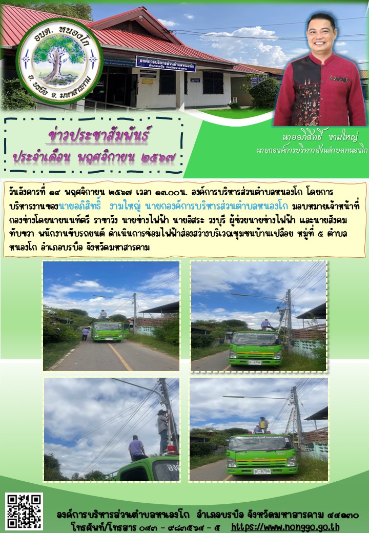 ดำเนินการซ่อมไฟฟ้าส่องสว่างบริเวณชุมชนตำบลหนองโก