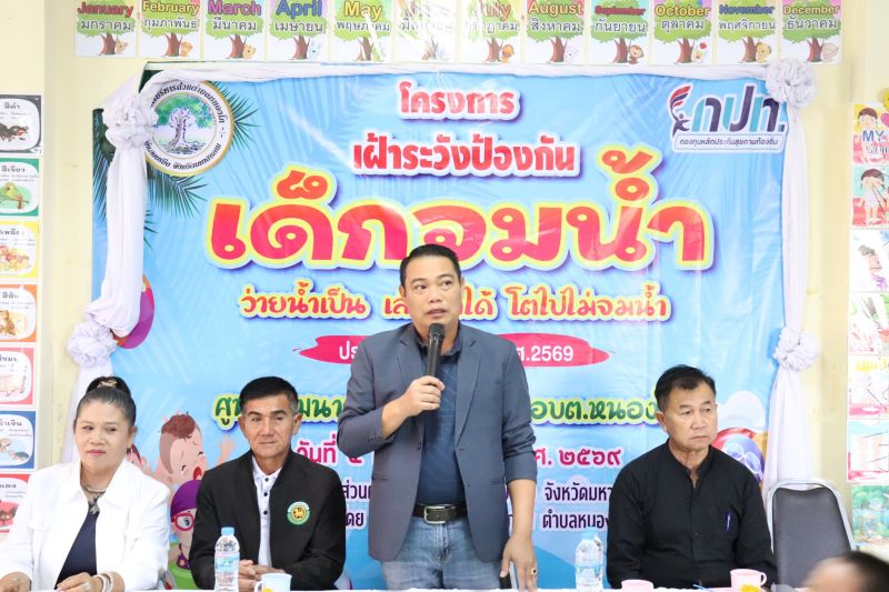 วันพฤหัสบดี ที่ 5 มีนาคม 2569 เวลา 09.00 น. นายอภิสิทธิ์ งามใหญ่ นายกองค์การบริหารส่วนตำบลหนองโก ประธานในพิธีเปิดโครงการเฝ้าระวังป้องกันเด็กจมน้ำ ว่ายน้ำเป็น เล่นน้ำได้ โตไปไม่จมน้ำ ประจำปีงบประมาณ พ.ศ. 2569 นายวิฑูรย์ ทับพิลา ปลัด อบต.กล่าวรายงานโครงการ โดยมีสมาชิกสภา อบต.,หัวหน้าสำนักปลัด, พนักงานเจ้าหน้าที่, คณะครู, ผู้ดูแลเด็ก ,ผู้ปกครอง เข้าร่วมโครงการดังกล่าว ซึ่งโครงการได้รับการสนับสนุนงบประมาณจากกองทุนหลักประกันสุขภาพตำบลหนองโก เพื่อสร้างความรู้และความตระหนักในการป้องกันจากการจมน้ำในเด็ก ให้กับกลุ่มคุณครูและผู้ปกครอง แกนนำชุมชนในการช่วยเหลือที่ถูกต้องหากเกิดอุบัติเหตุทางน้ำ โดยวิทยากรผู้ให้ความรู้จากโรงพยาบาลบรบือ ดำเนินโครงการโดยศูนย์พัฒนาเด็กเล็กบ้านหนองโก และศูนย์พัฒนาเด็กเล็กบ้านหนองตูบเปลือย สังกัดกองการศึกษาศาสนาและวัฒนธรรม ณ ศูนย์พัฒนาเด็กเล็กบ้านหนองโก