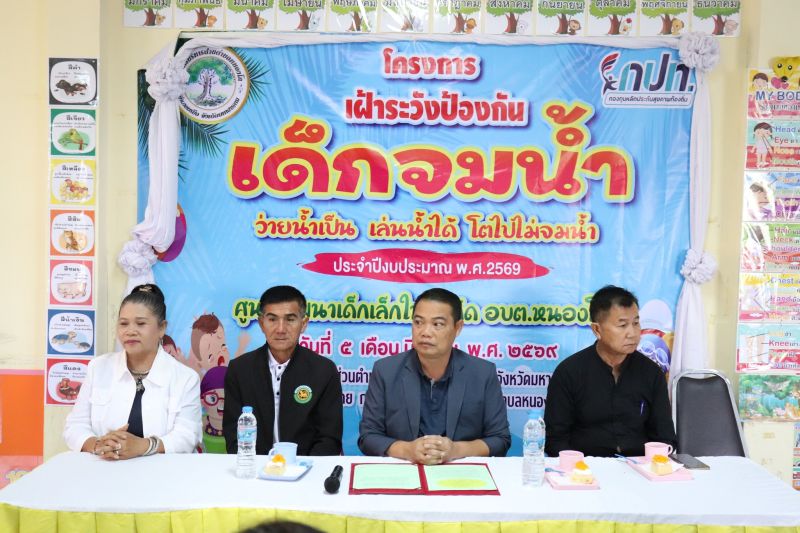 วันพฤหัสบดี ที่ 5 มีนาคม 2569 เวลา 09.00 น. นายอภิสิทธิ์ งามใหญ่ นายกองค์การบริหารส่วนตำบลหนองโก ประธานในพิธีเปิดโครงการเฝ้าระวังป้องกันเด็กจมน้ำ ว่ายน้ำเป็น เล่นน้ำได้ โตไปไม่จมน้ำ ประจำปีงบประมาณ พ.ศ. 2569 นายวิฑูรย์ ทับพิลา ปลัด อบต.กล่าวรายงานโครงการ โดยมีสมาชิกสภา อบต.,หัวหน้าสำนักปลัด, พนักงานเจ้าหน้าที่, คณะครู, ผู้ดูแลเด็ก ,ผู้ปกครอง เข้าร่วมโครงการดังกล่าว ซึ่งโครงการได้รับการสนับสนุนงบประมาณจากกองทุนหลักประกันสุขภาพตำบลหนองโก เพื่อสร้างความรู้และความตระหนักในการป้องกันจากการจมน้ำในเด็ก ให้กับกลุ่มคุณครูและผู้ปกครอง แกนนำชุมชนในการช่วยเหลือที่ถูกต้องหากเกิดอุบัติเหตุทางน้ำ โดยวิทยากรผู้ให้ความรู้จากโรงพยาบาลบรบือ ดำเนินโครงการโดยศูนย์พัฒนาเด็กเล็กบ้านหนองโก และศูนย์พัฒนาเด็กเล็กบ้านหนองตูบเปลือย สังกัดกองการศึกษาศาสนาและวัฒนธรรม ณ ศูนย์พัฒนาเด็กเล็กบ้านหนองโก
